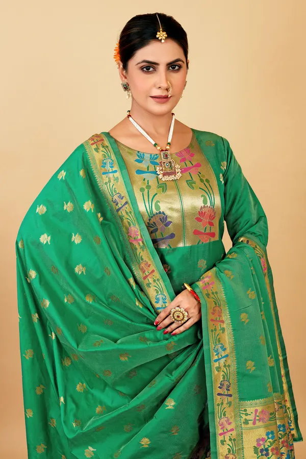 Green Colour Paithani Suit Unstitched Fabric With Dupatta