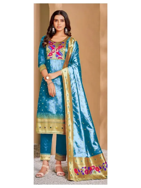 Parevdi 1 Colour Paithani Suit Unstitched Fabric With Dupatta